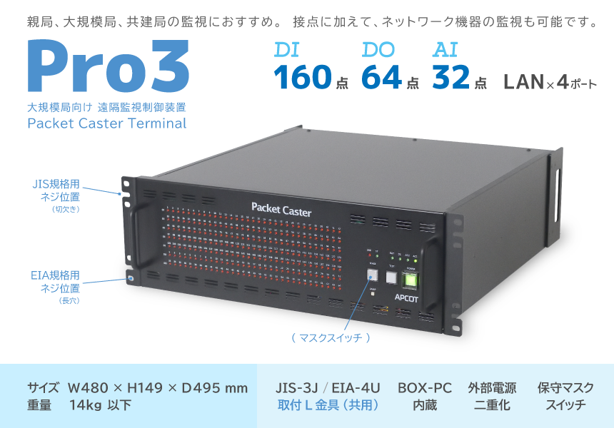 | 製品名 | 遠隔監視制御システム Packet Caster Terminal Pro3 |